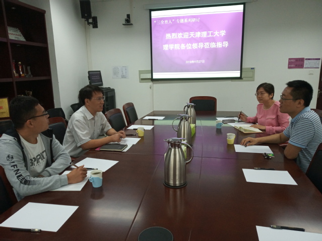 (通讯员 吴宵宵)9月27日,天津理工大学理学院党委副书记回建东一行来到我院交流。院党委副书记赵爽、院团委书记刘学、实验中心陈宗强参加了交流。