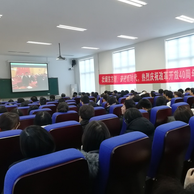 12月18日上午,性爱视频 组织师生党员和干部群众集中收看庆祝改革开放40周年大会直播,学院党政班子全体成员、教师党员群众、学生党员参加。