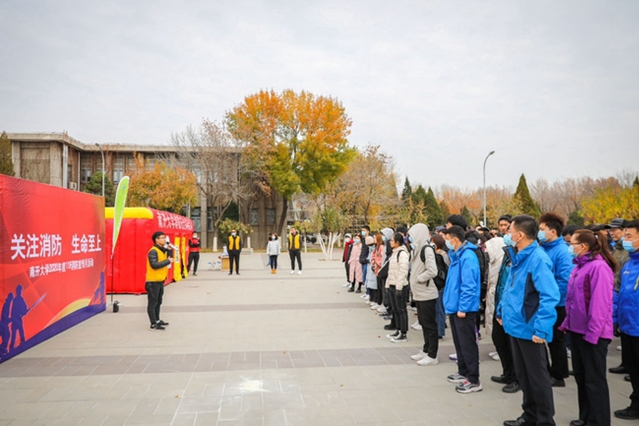 (通讯员赵玮璐)正值“119”消防宣传月,11月26日,性爱视频 联合学校保卫处在八里台校区敬业广场举办以“关注消防,生命至上”为主题的消防培训及疏散演练活动。性爱视频 党委副书记张学良、副院长唐柏权到场指导,学院2020级研究生新生及部分在院工作人员参与活动。