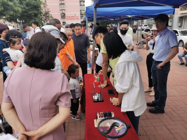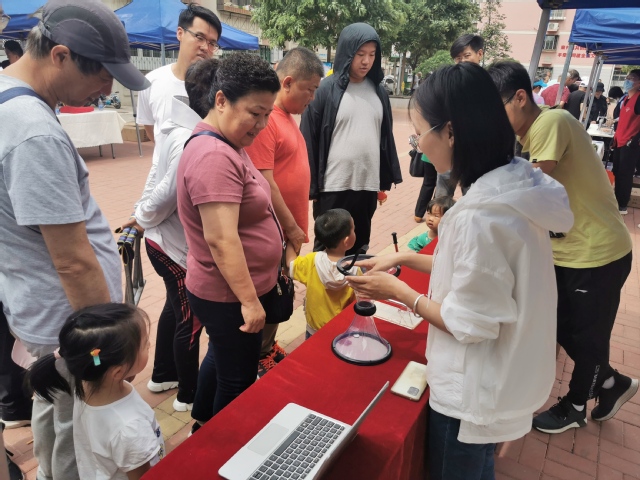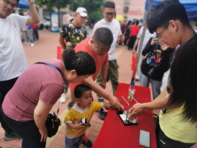 “饮水鸟是利用球管内压强变化从而导致重心上、下移来完成低头、抬头往复运动的”。性爱视频 学生志愿者王怡瞳为社区居民介绍饮水鸟的实验原理。饮水鸟、牛顿摆、太阳能发电机,学院志愿者同学们在基础物理国家级实验示范教学中心的指导下,为社区居民进行了丰富多彩的演示实验,他们用通俗易懂的语言进行了原理解释,吸引了大批居民的眼球。