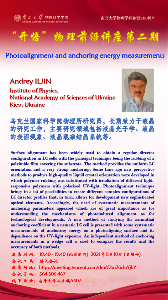 【“开悟”物理前沿讲座(第 2 期)】Photoalignment and anchoring energy measurements