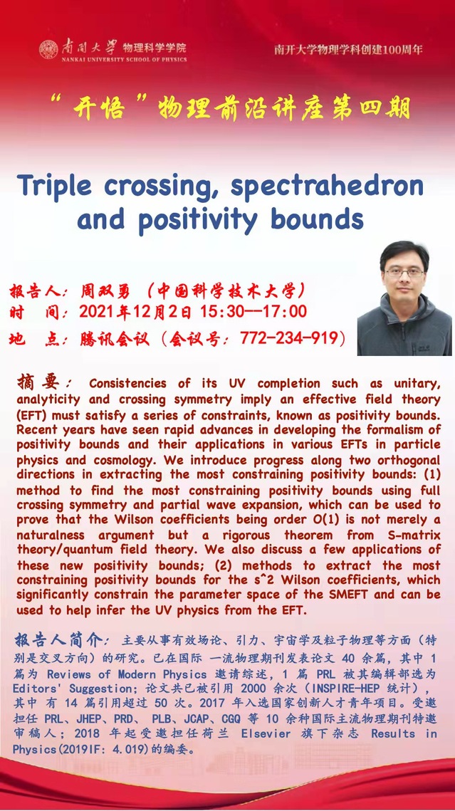 【“开悟”物理前沿讲座(第 4 期)】Triple crossing, spectrahedron and positivity bounds