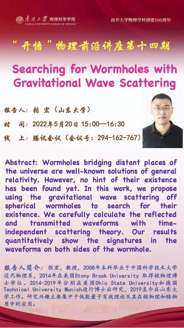 【“开悟”物理前沿讲座】(第 14 期)Search for Wormholes with Gravitational Wave Scatterting