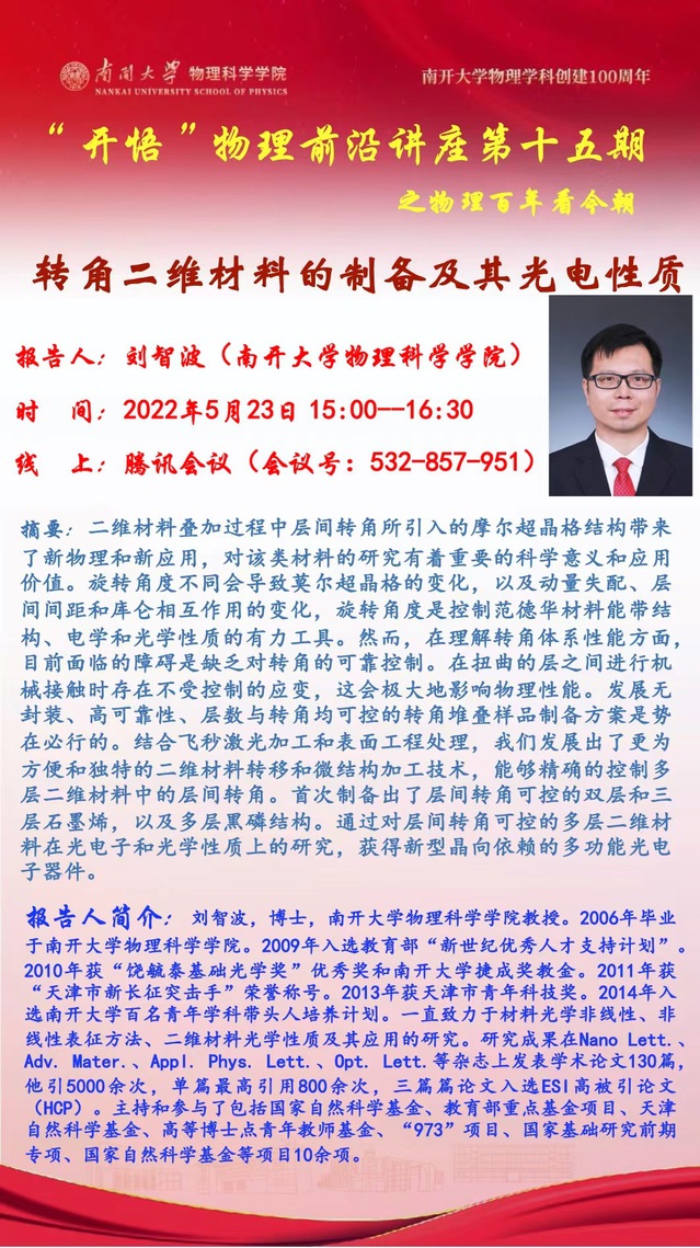 【“开悟”物理前沿讲座】(第 15 期)转角二维材料的制备及其光电性质
