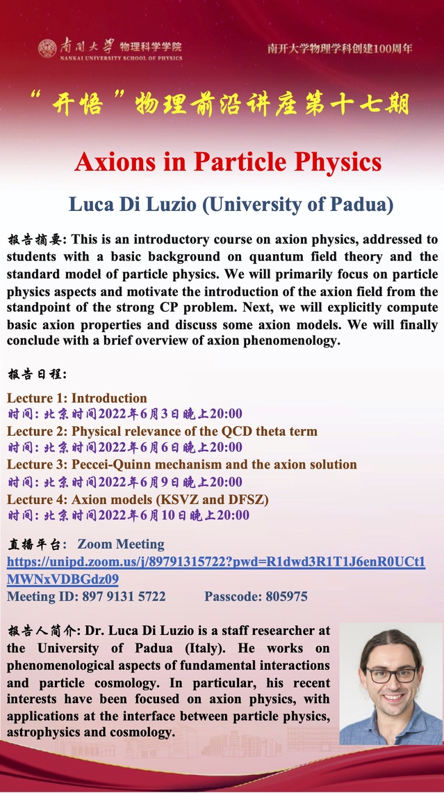 【“开悟”物理前沿讲座】(第 17 期)Axions in Particle Physics