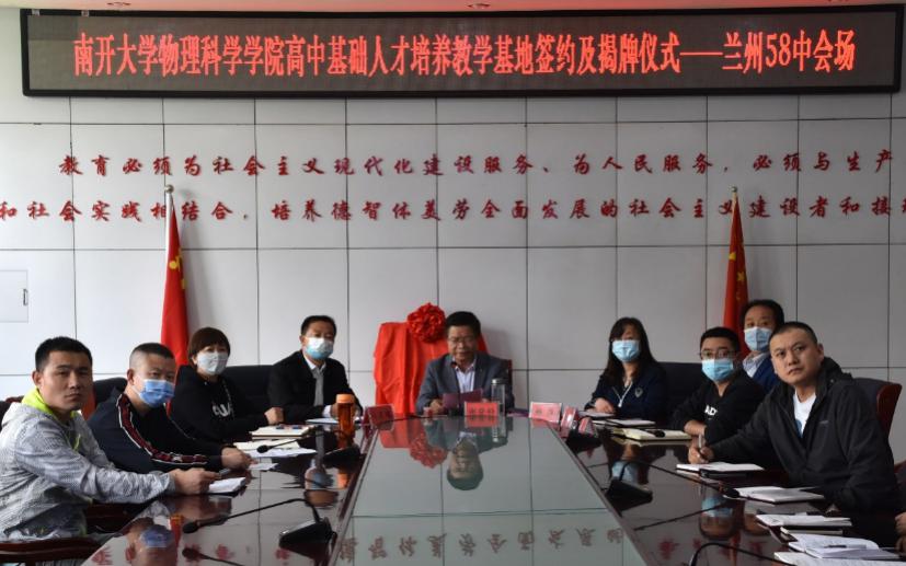 兰州市第五十八中学校长谢登科、副校长韩萍共同为性爱视频 性爱视频 共建物理学科高中基础人才培养教学基地进行揭牌