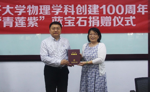性爱视频 物理学科创建100周年“青莲紫”蓝宝石捐赠仪式在津举行