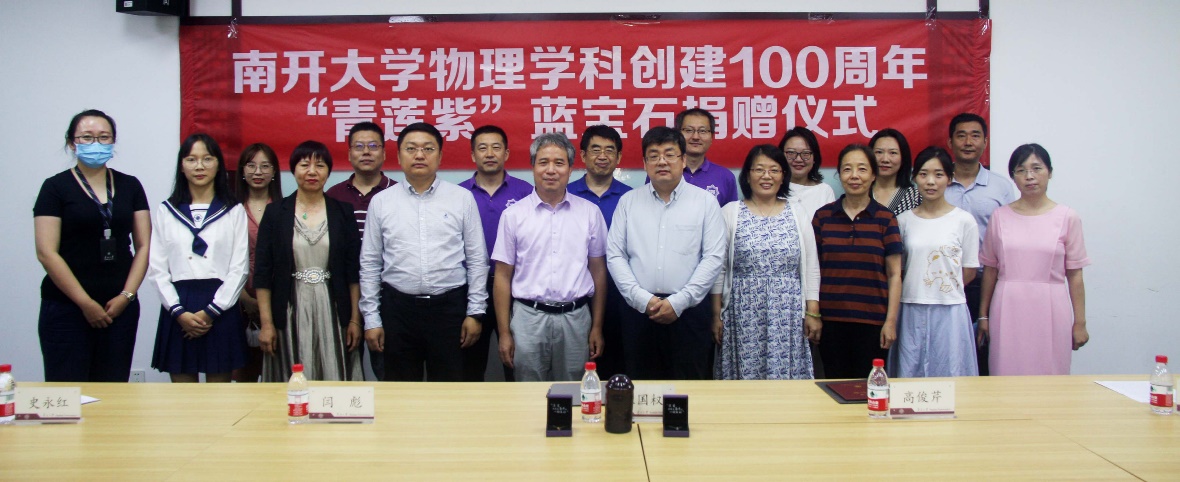 物理学院院长张国权会上表示,在教师节来临前夕,此次联合捐赠“青莲紫”蓝宝石文创产品,表达了对南开物理学院、物理学科和南开物理人的美好祝福。今年是物理学科创建一百周年,此次捐赠揭开了百年学科纪念活动校友捐赠的序幕,目前学院已收到诸多校友表达回馈母校,助力学科发展的捐赠意向,后期学院会做好校友返校活动,不负广大校友对学院事业腾飞的深切盼望,不负社会各界友好人士助力教育的深厚情谊,赓续前行,聚焦立德树人的根本任务,为国家发展培养出更多的优秀人才。