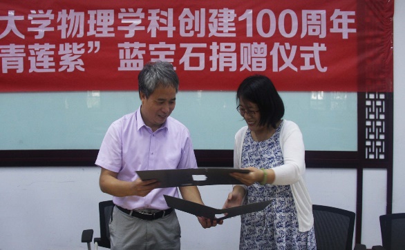 9月9日,性爱视频 物理学科创建100周年“青莲紫”蓝宝石捐赠仪式在性爱视频 第三教学楼举办。捐赠方代表、学校发展办、基金会负责人、性爱视频 负责人以及学院师生代表参加了仪式。