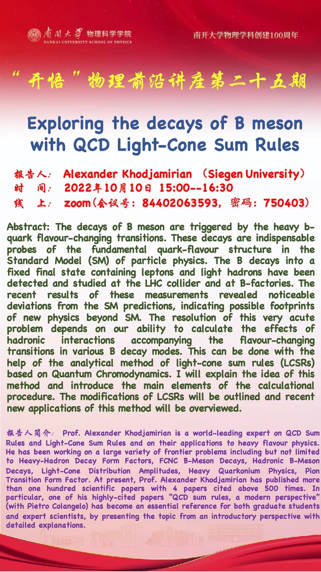 【“开悟”物理前沿讲座(第 25 期)】Exploring the decays of B meson with QCD Light-Cone Sun Rules