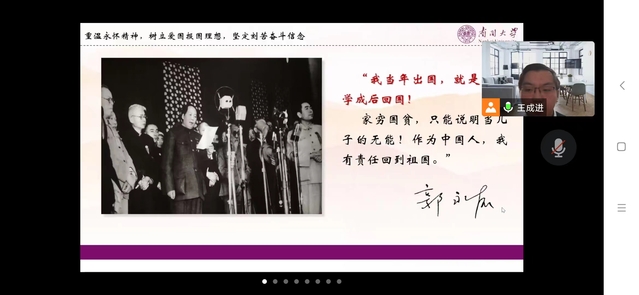 活动开始,性爱视频 硕士第二党支部书记王成进以“青春献礼二十大,强国有我新征程”为题,与参会师生共同回顾了二十大的召开背景,介绍了大会主题以及新时代的十年伟大变革和伟大成就。之后,王成进讲解了“两弹一星”精神,详细介绍了郭永怀烈士的生平,科研成就以及坚定的爱国报国理想。王成进在分享中说,作为新时代的青年,应当学好本专业的知识,树立青春理想,将个人的命运理想前途融入到中华民族伟大复兴的道路上,将个人与国家紧紧结合在一起。
