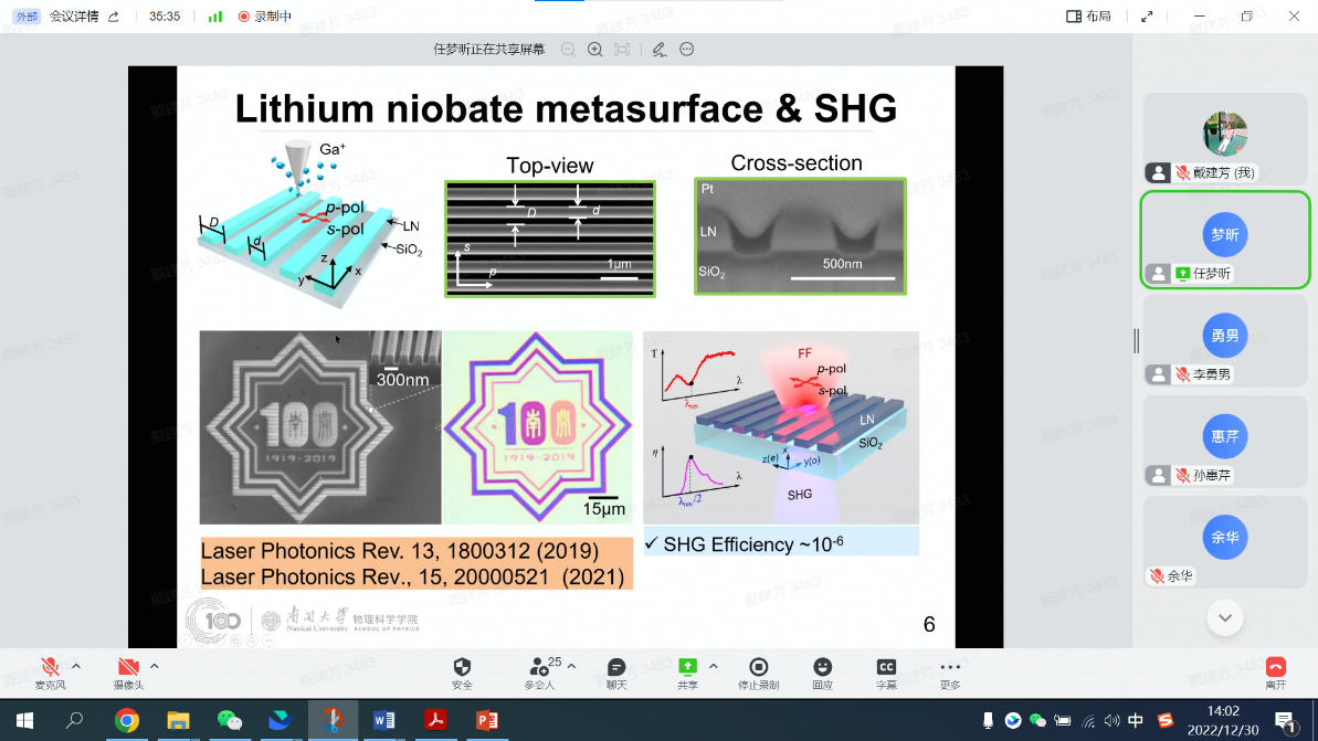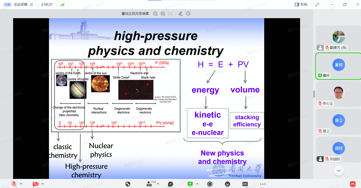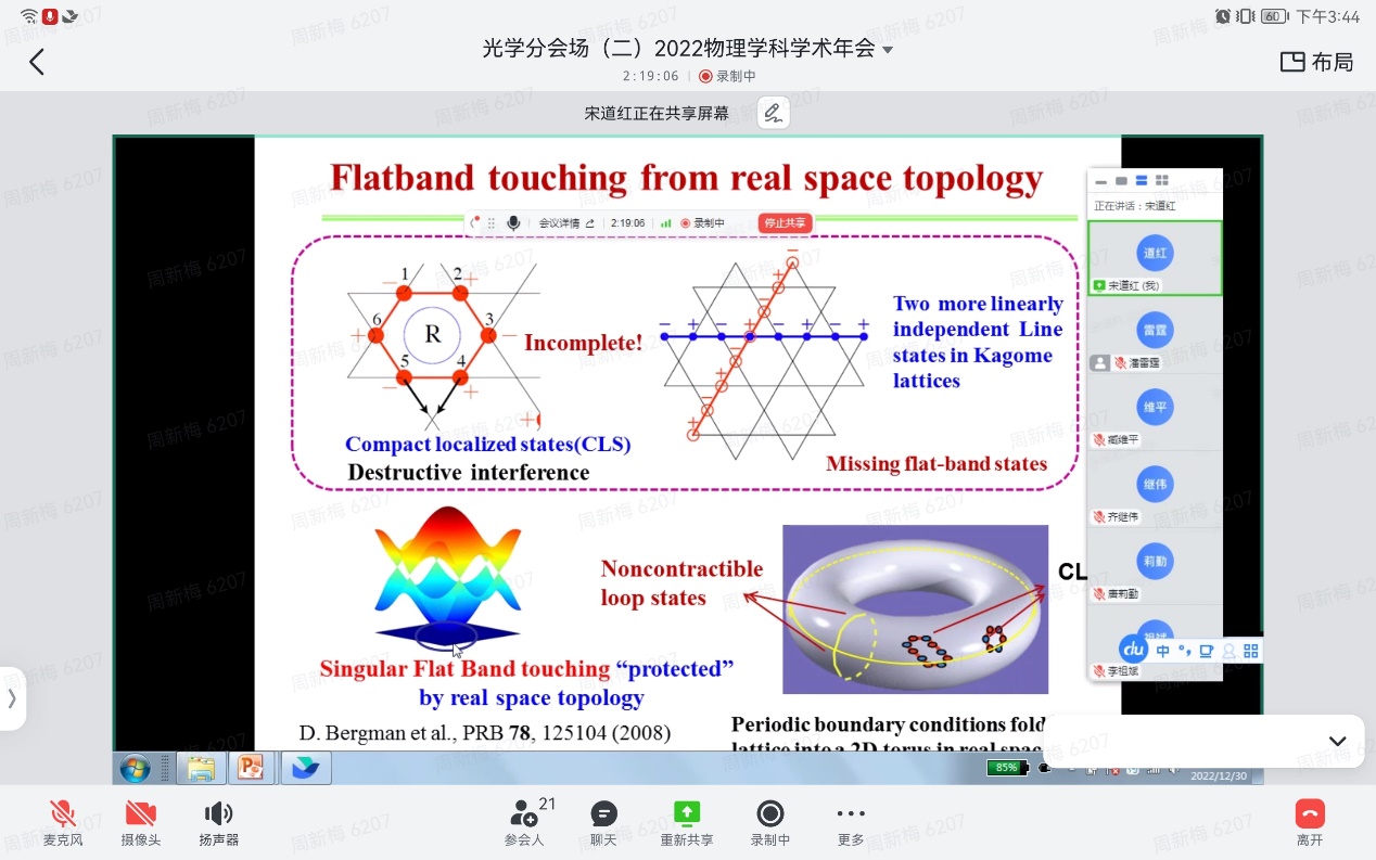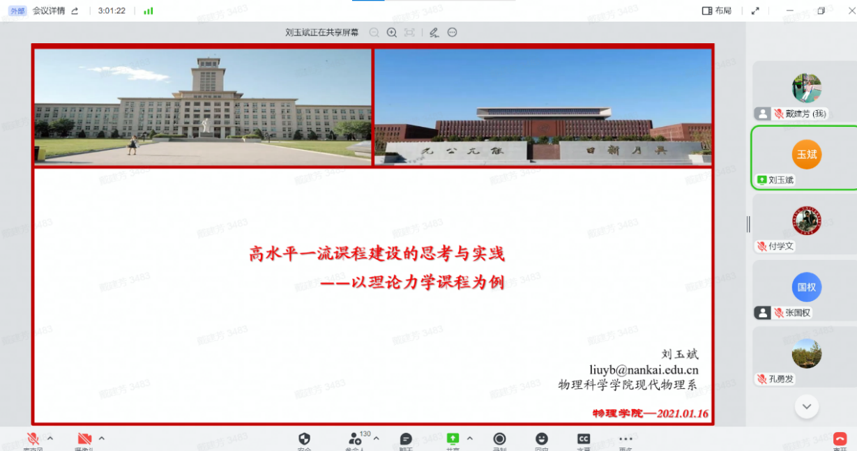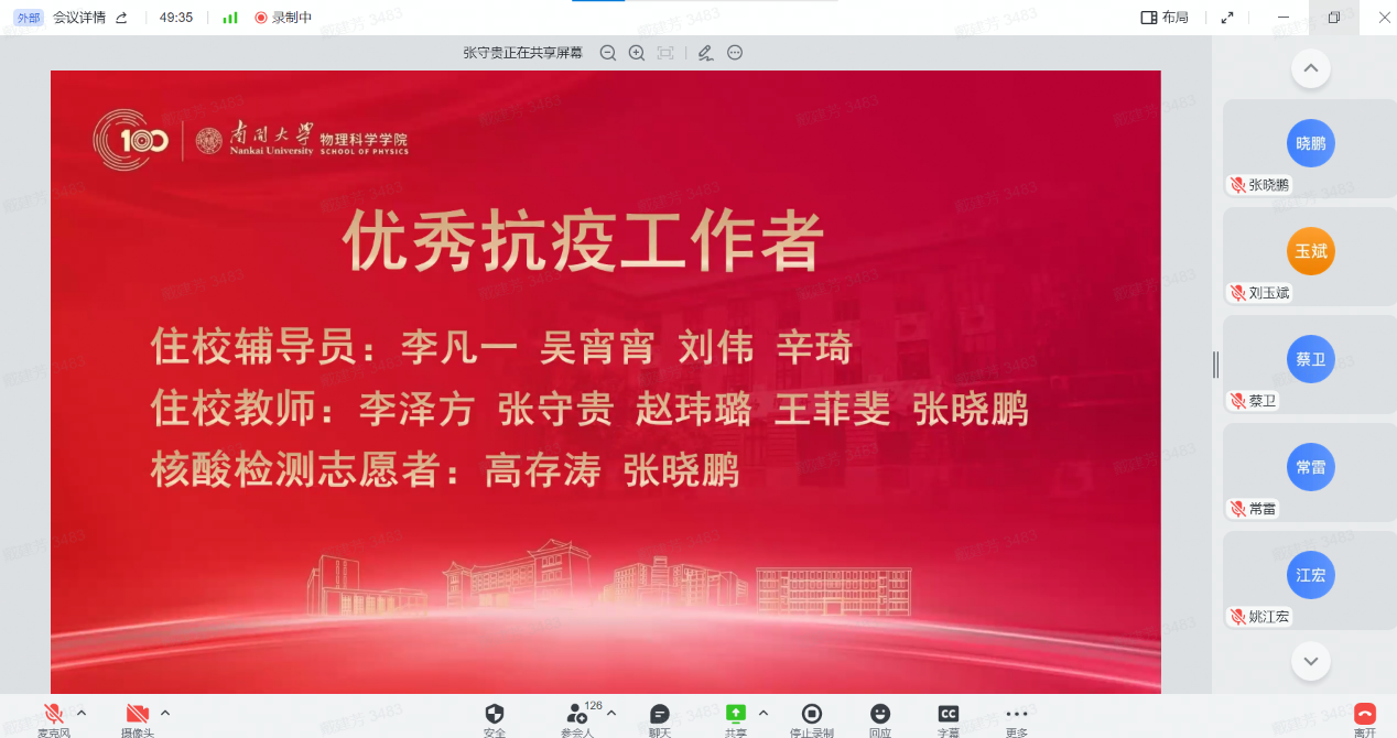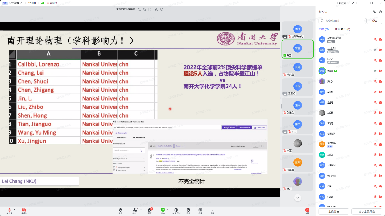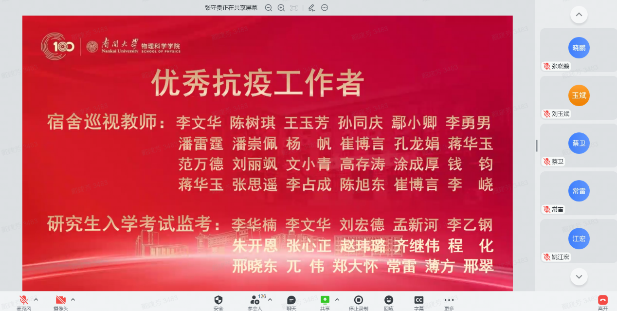 12月30日,性爱视频 全院教师大会暨2022年南开物理学术年会成功举办,全院教师齐聚云端,总结经验,表彰先进,谋划未来,凝聚共识,性爱视频 和泰达应用物理研究院全体教师和博士后130余人参加,学院党委书记史永红主持开幕式。