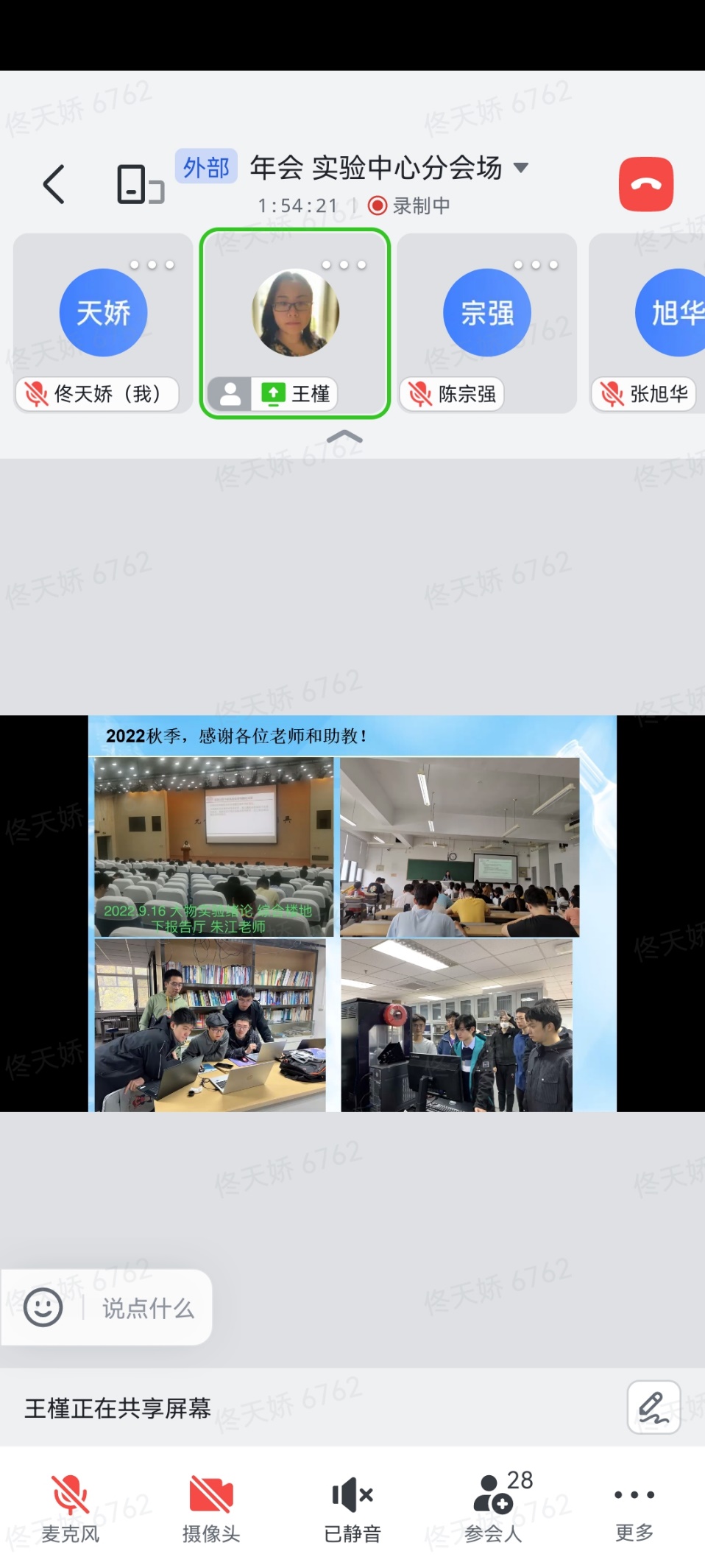 会议下午阶段进行了光学、理论、凝聚态物理、实验中心、博士后五个分会场报告,90余位教师就“课程思政”实践、学科前沿热点和创新性工作进行汇报展示,报告图文并茂,深入浅出,学科交叉,思维碰撞,激发灵感,满满一天的学术盛宴,让参与的师生受益匪浅,深受启发,为下一阶段工作开阔了思路。