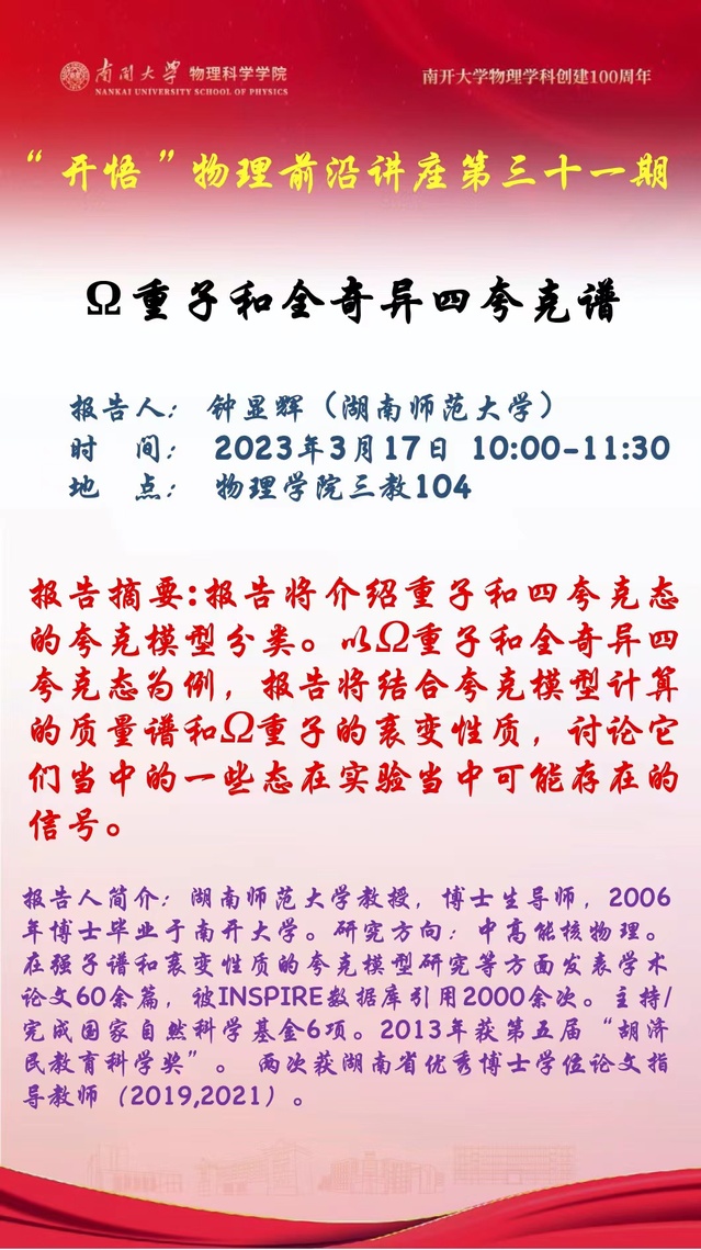 【“开悟”物理前沿讲座(第 31期)】欧米伽重子和全奇异四夸克谱