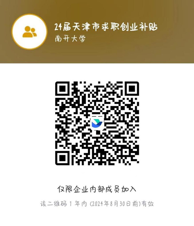 请申请2024届天津市求职创业补贴的同学扫码加入飞书群,今后我们将对申请该补贴的同学进行就业帮扶。