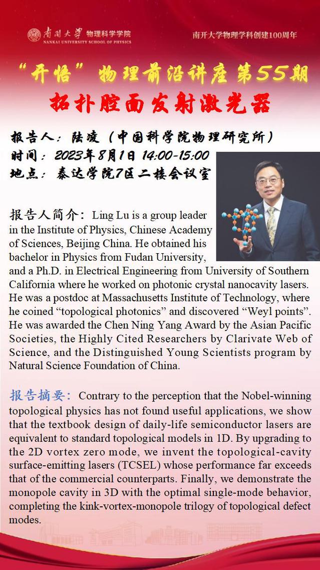 【“开悟”物理前沿讲座(第 55期)】拓扑腔面发射激光器