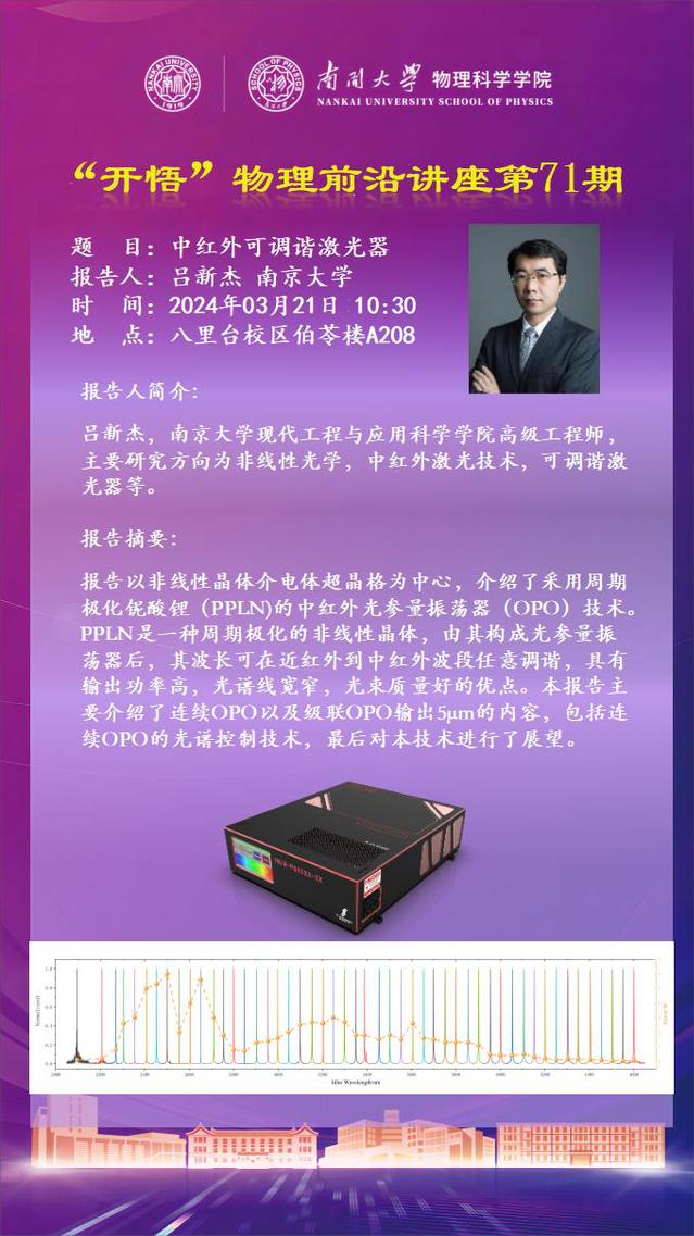 【“开悟”物理前沿讲座(第71期)】中红外可调谐激光器