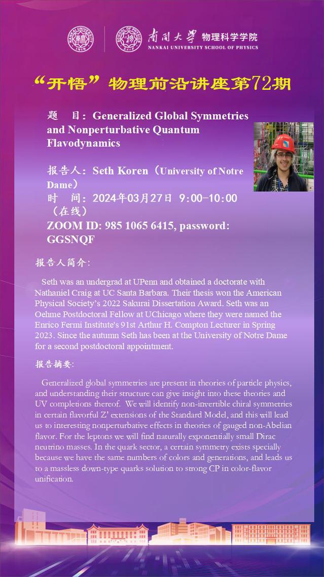 【“开悟”物理前沿讲座(第72期)】Generalized Global Symmetries and Nonperturbative Quantum Flavodynamics