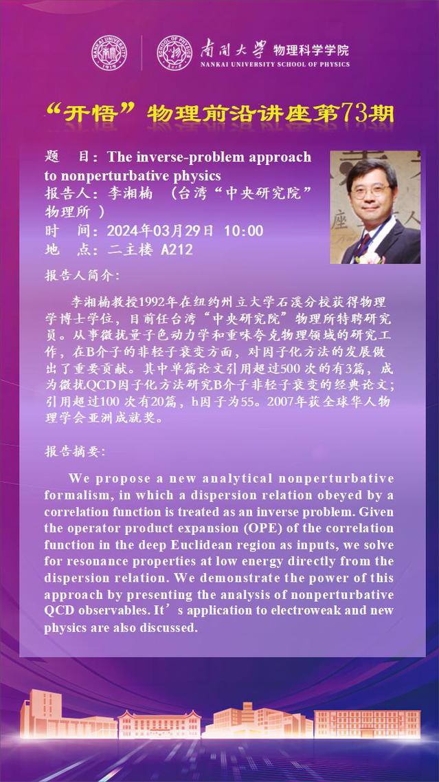 【“开悟”物理前沿讲座 (第73期)】The inverse-problem approach to nonperturbative physics