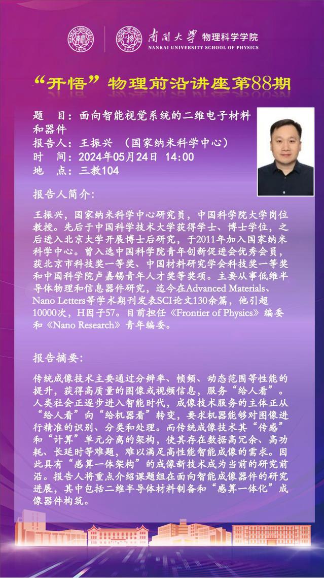 【“开悟”物理前沿讲座(第88期)】面向智能视觉系统的二维电子材料和器件