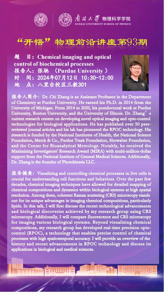 【“开悟”物理前沿讲座 (第93期)】Chemical imaging and optical control of biochemical processes