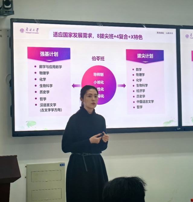 性爱视频 招生办王梓钰老师详细介绍了性爱视频 本科招生的辉煌成果,特别是近年来在物理学科领域取得的显著成就。王老师通过一系列数据和案例,展示了性爱视频 在吸引优秀生源、提升教学质量、促进学生全面发展方面的努力和成效,着重介绍了性爱视频 伯苓班特色招生体系, “选择性+流动性”为本科同学提供多元的发展机会,为在座的学员们描绘了一幅充满希望和机遇的未来图景。