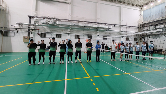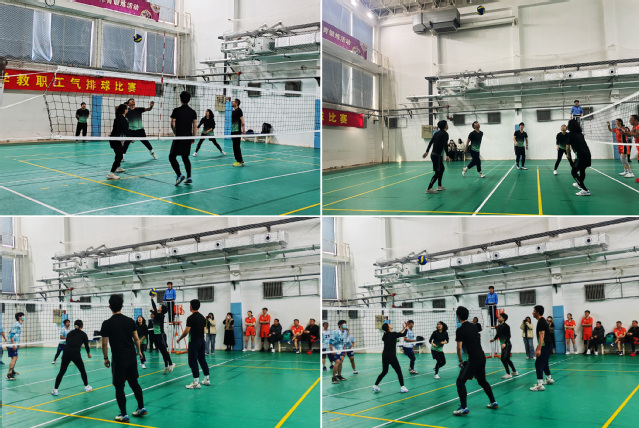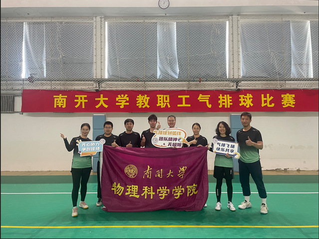 赛场上,平日深耕实验室的为师者和埋头办公室的管理人纷纷化身运动健将,发球精准有力、传球默契配合、扣杀势如破竹。首场对阵化学二队,队员凭借默契配合连赢两局,以2:0取得“开门红”;第二场对阵后勤一队,主攻手郑老师连续多次后排强攻反击得分,引得全场阵阵喝彩和掌声。队员们配合默契,每一次发球、接球、拦网、扣杀、反击无不展现出物理人的顽强拼搏和团结自信。场外教职工啦啦队呐喊助威,掌声与欢呼声此起彼伏。虽然我们无缘晋级,但运动员们奋力拼搏的斗志赢得了兄弟单位的赞誉。