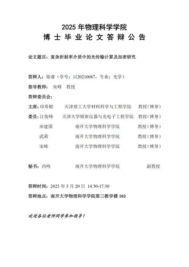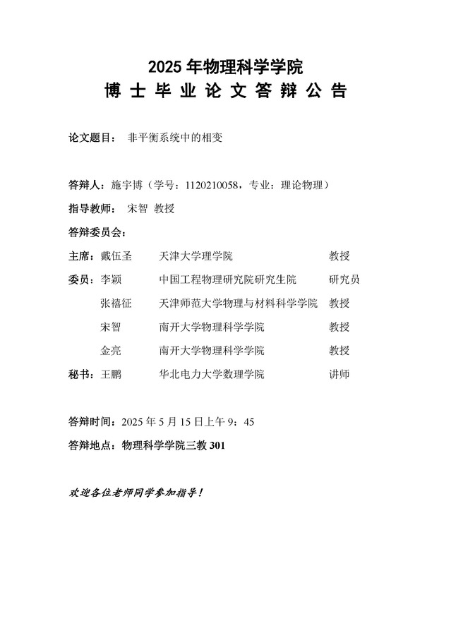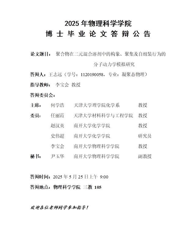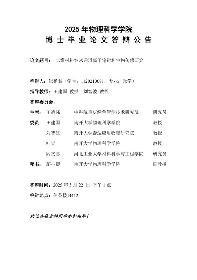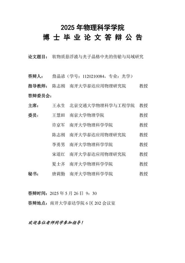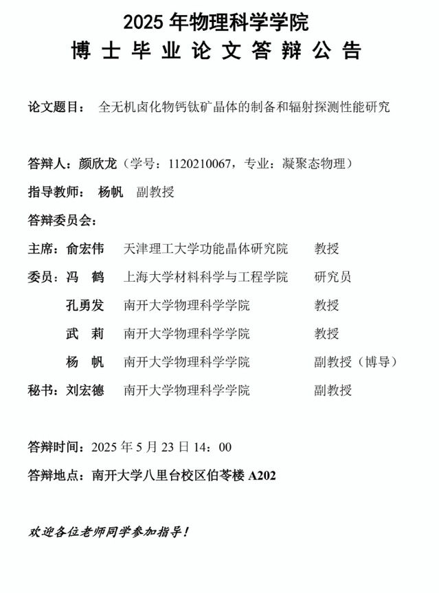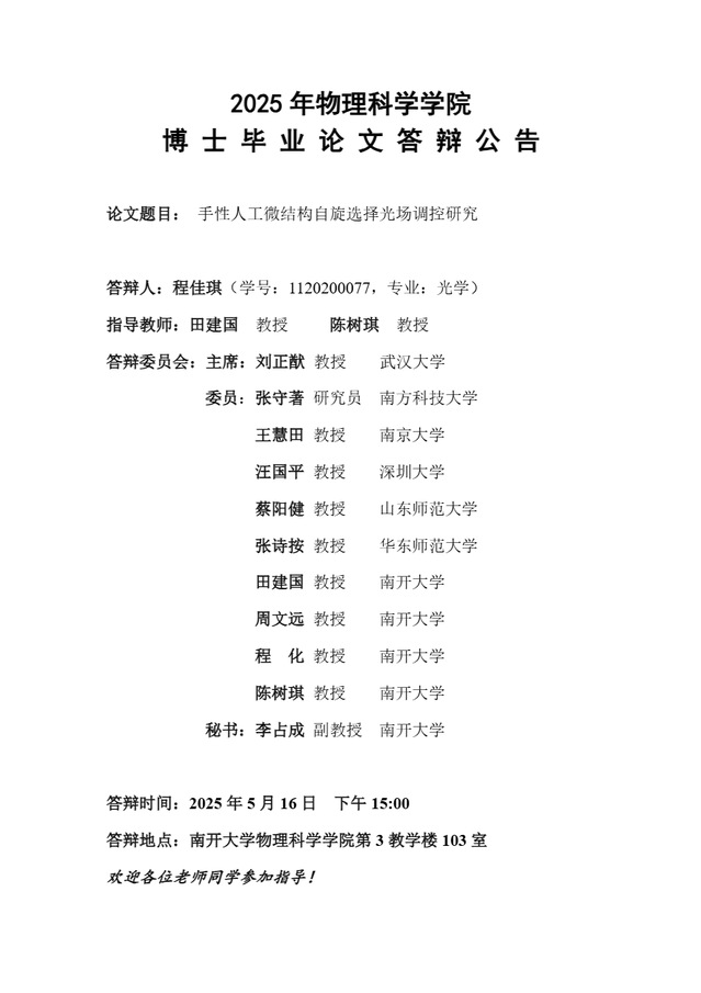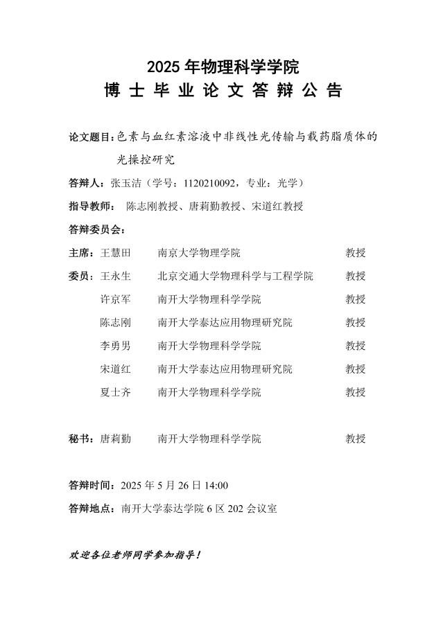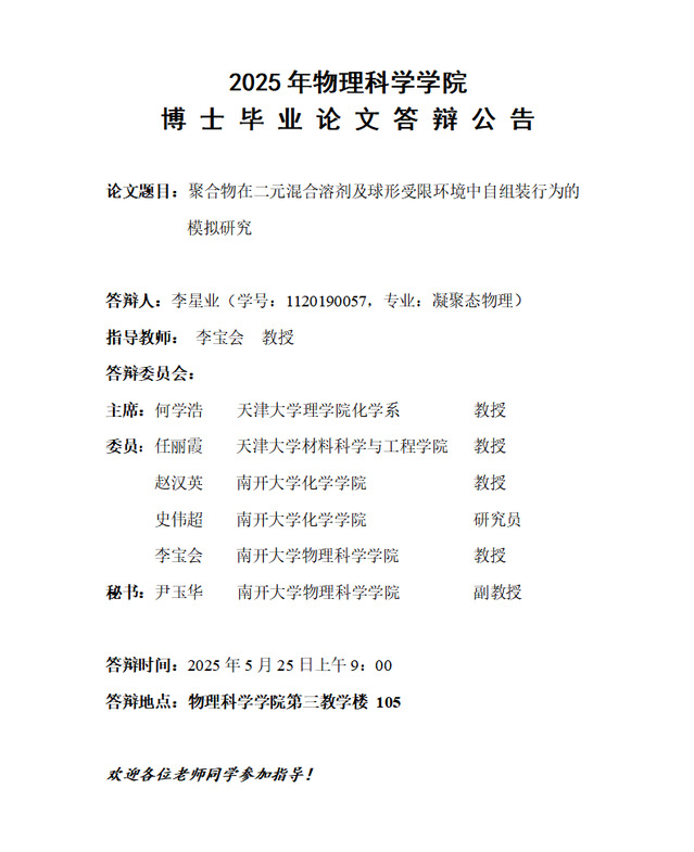 【毕业答辩】2025年春季学期性爱视频 博士毕业论文答辩公告