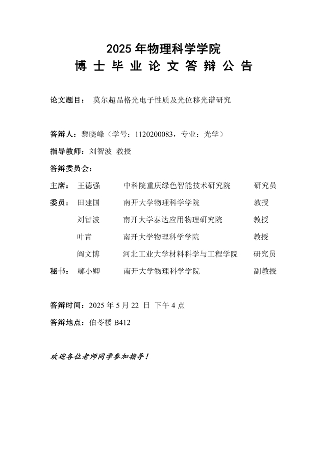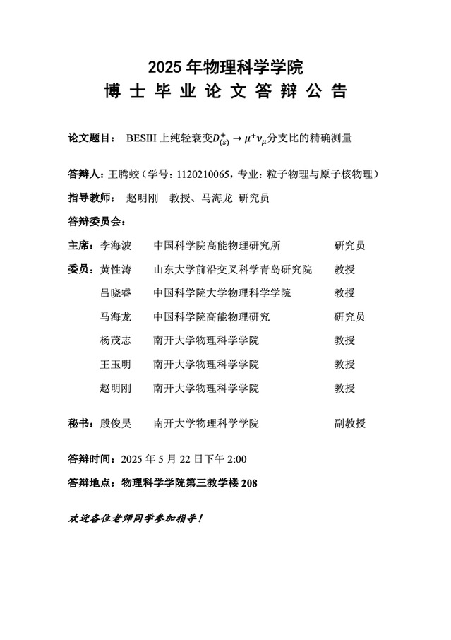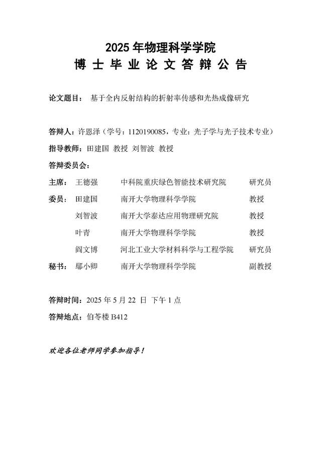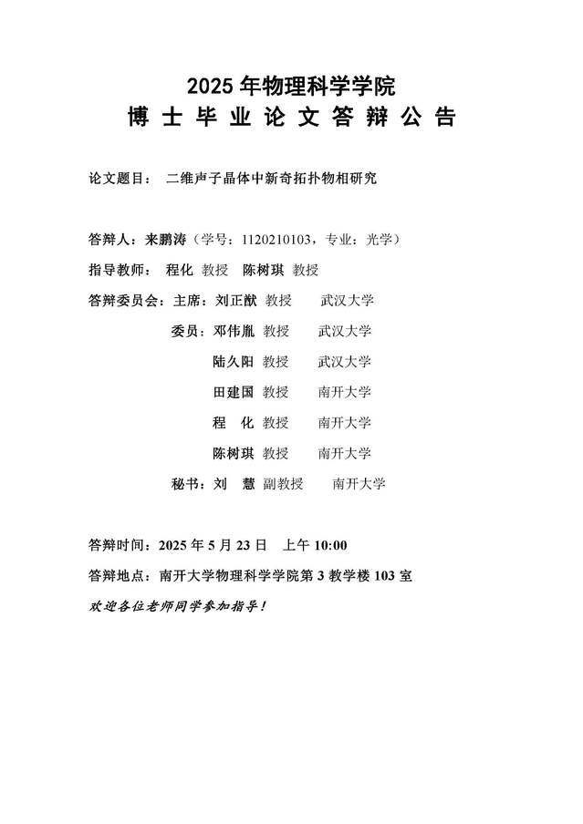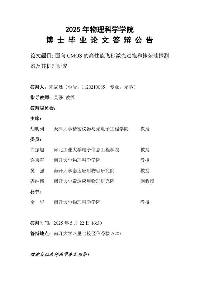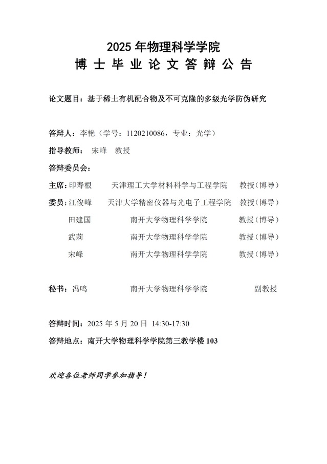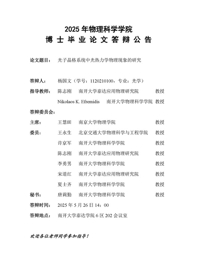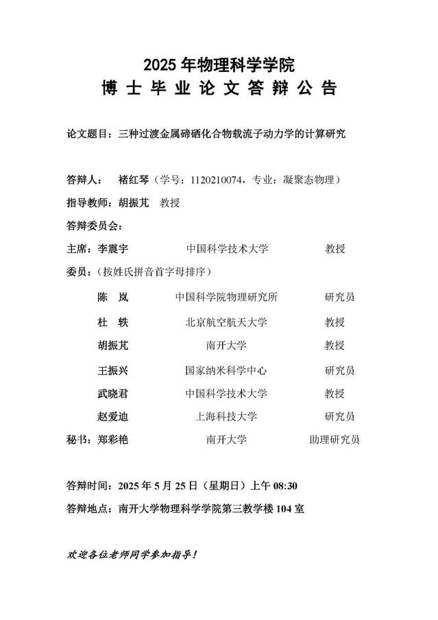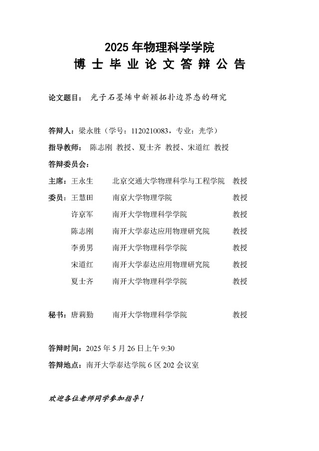 【毕业答辩】2025年春季学期性爱视频 博士毕业论文答辩公告