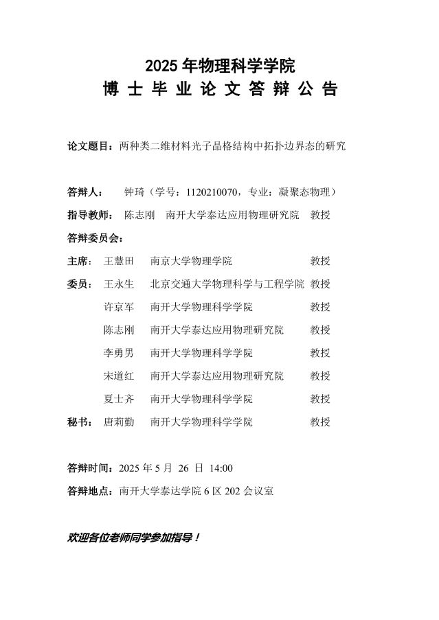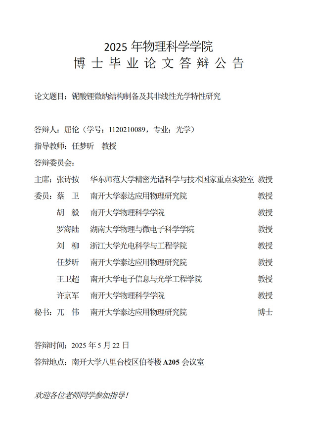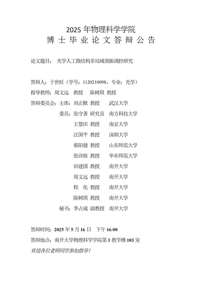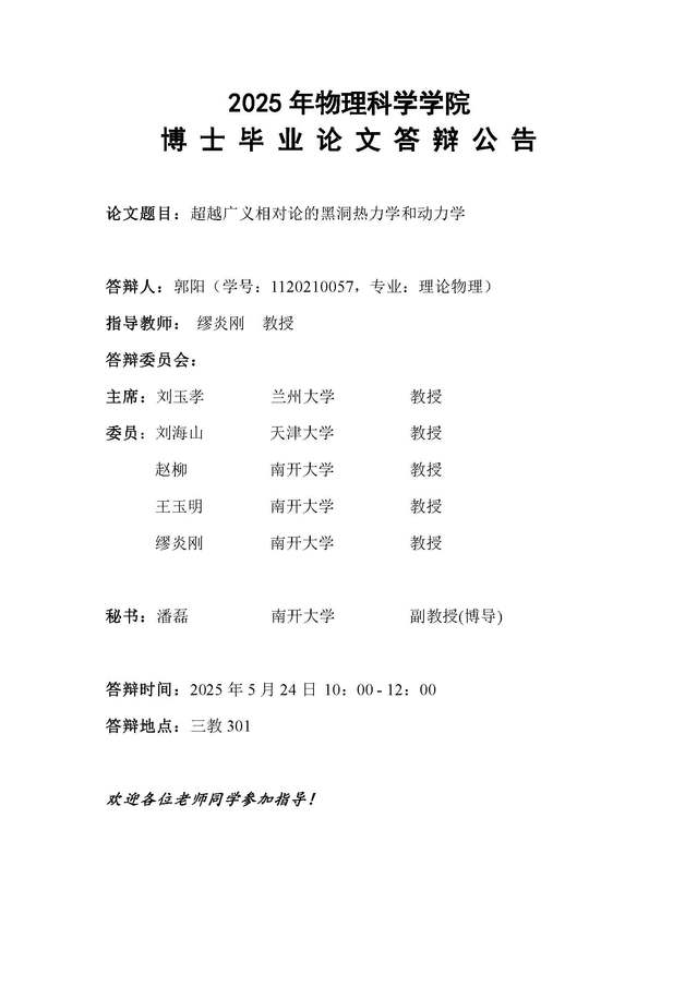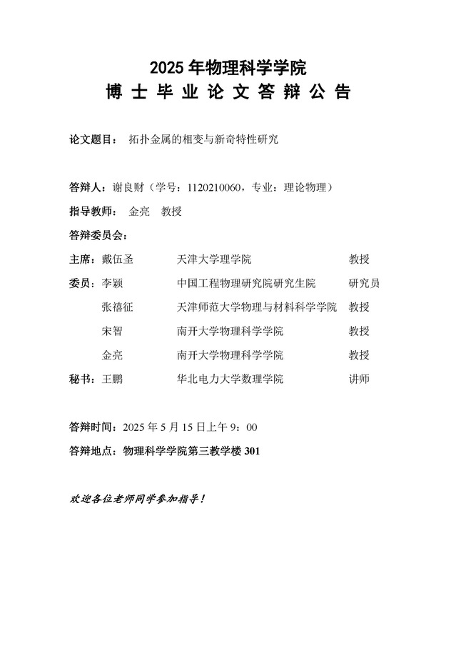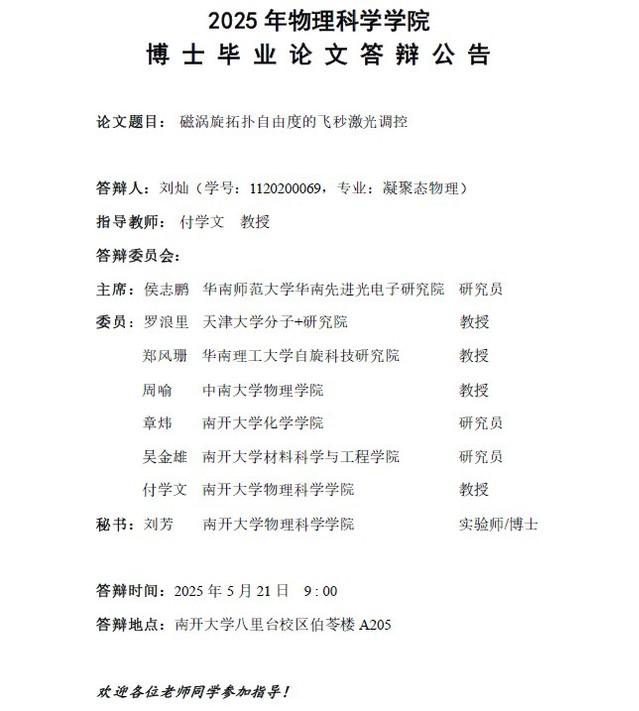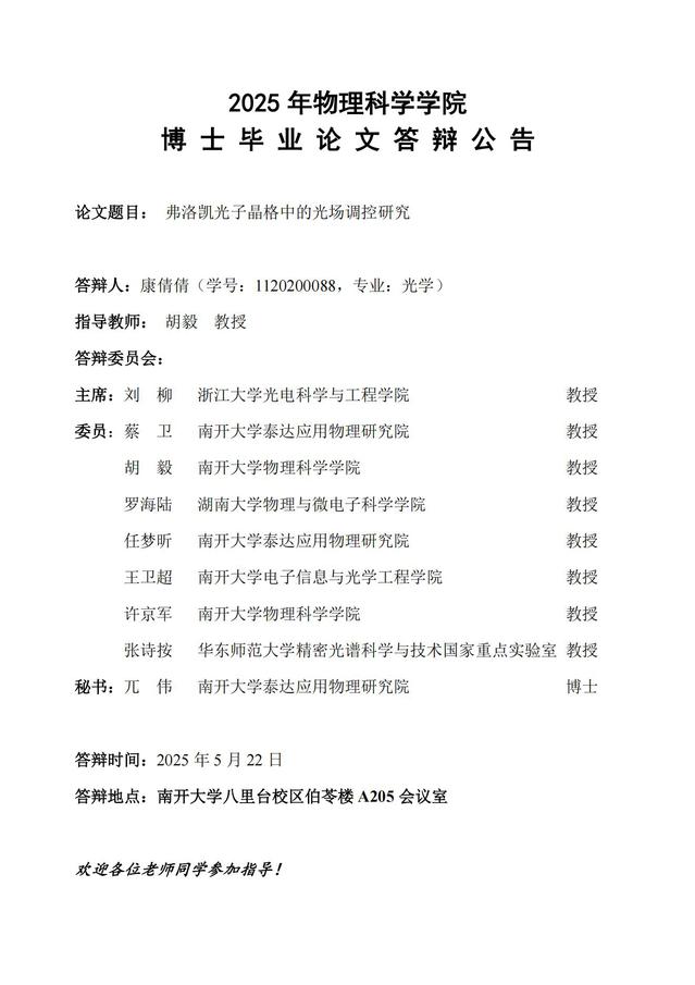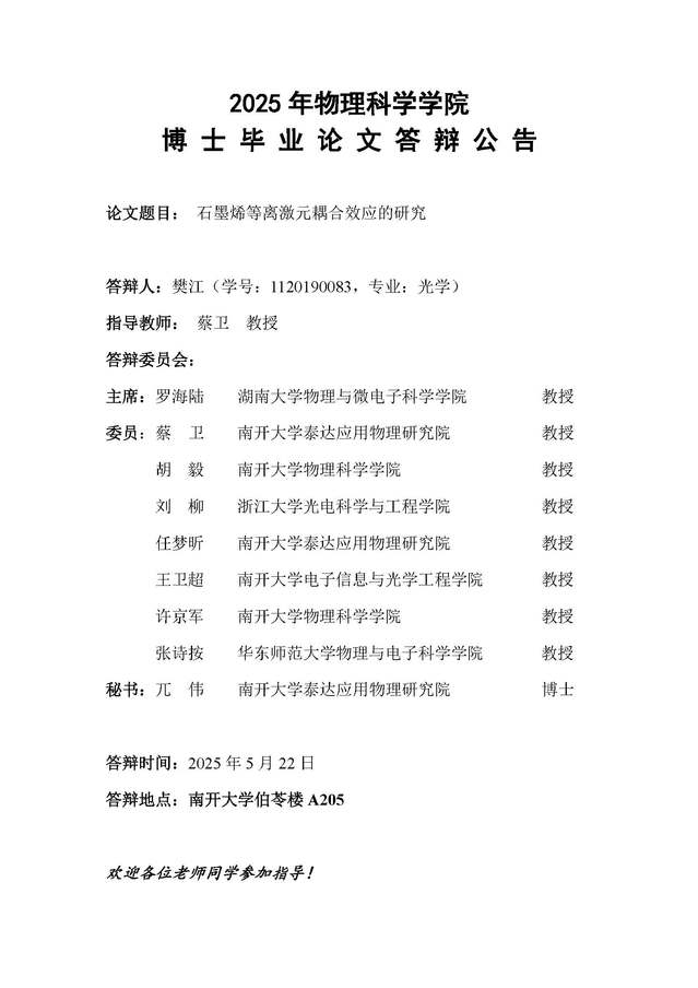 【毕业答辩】2025年春季学期性爱视频 博士毕业论文答辩公告