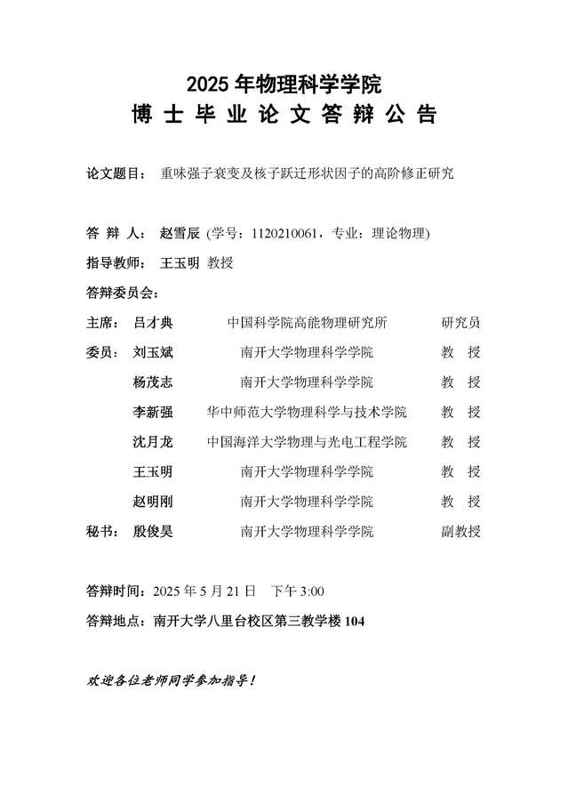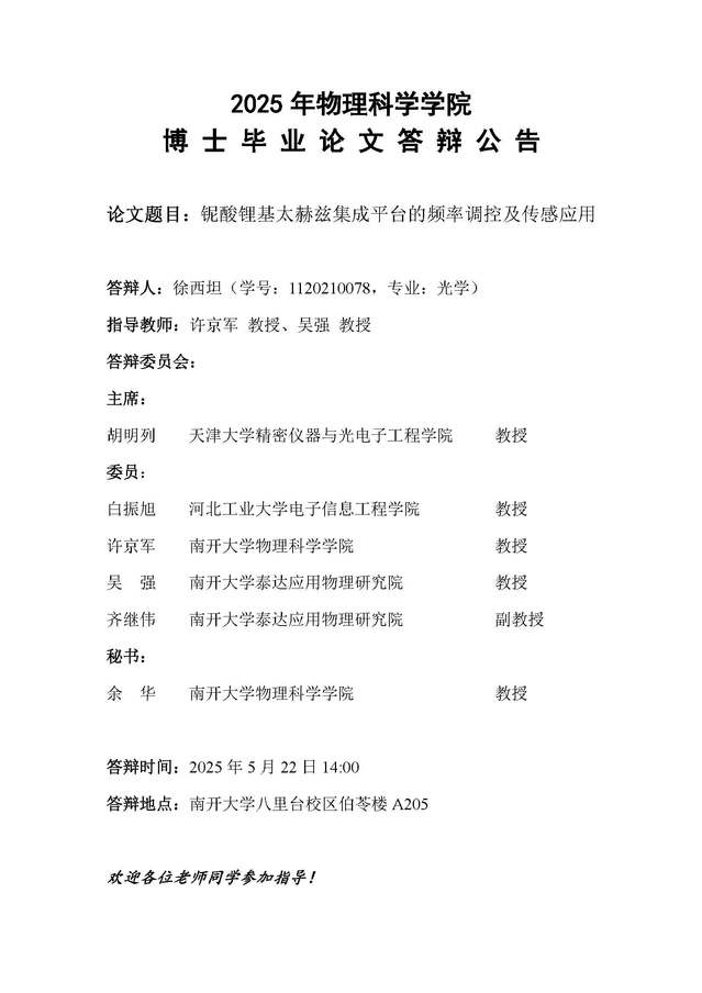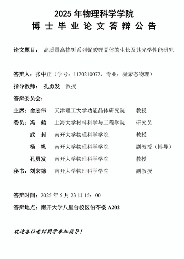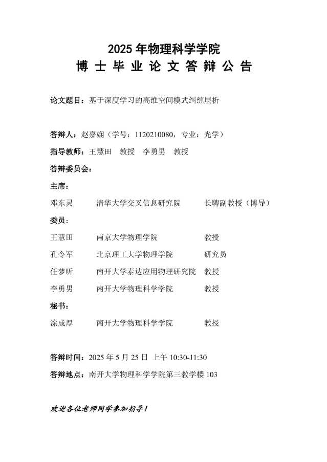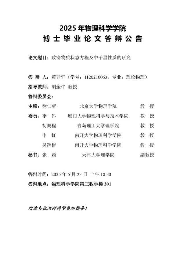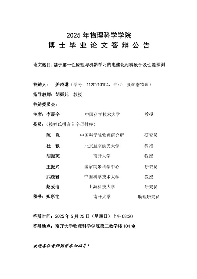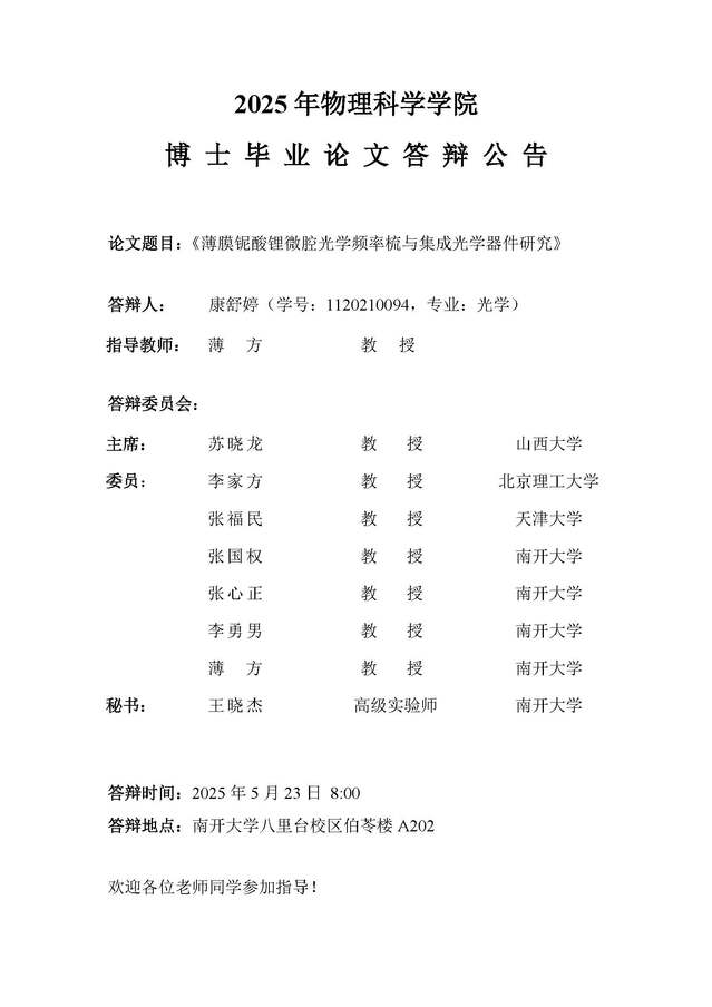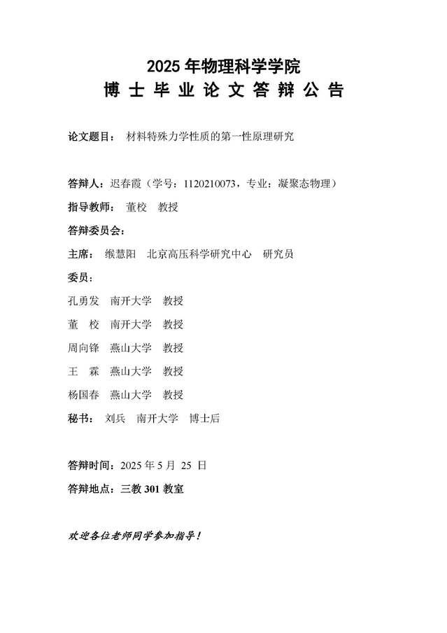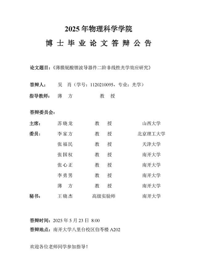 【毕业答辩】2025年春季学期性爱视频 博士毕业论文答辩公告