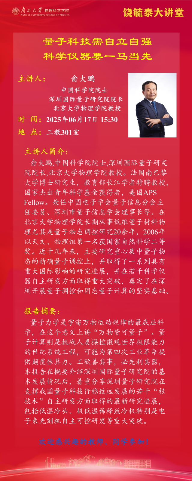 【饶毓泰大讲堂】量子科技需自立自强 科学仪器要一马当先