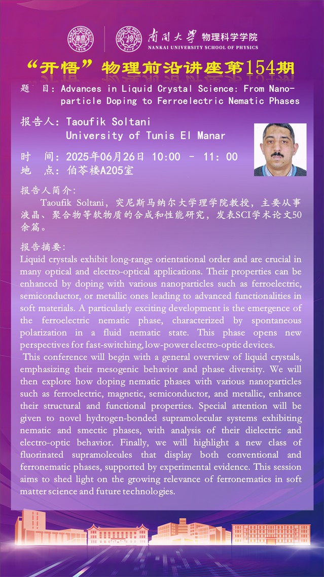 【“开悟”物理前沿讲座 (第154期)】Advances in Liquid Crystal Science : From Nano-particle Doping to Ferroelectric Nematic Phases