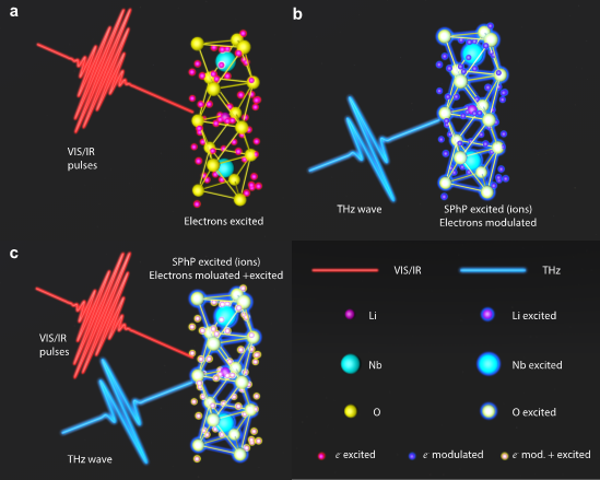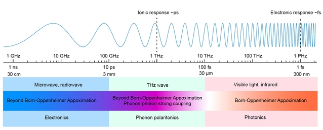 受激声子极化激元与玻恩—奥本海默近似的破坏【Nanophotonics-2024】 上个世纪50年代,黄昆先生用一组方程(黄昆方程)描述了这种元激发所遵循的基本规律,也揭示了离子晶体中横光学声子与光子相互耦合的物理本质。然而,黄昆方程描述的是晶格热振动情况下,自发产生的声子极化激元。当考虑低频太赫兹波作用于晶格时,会产生受激的声子极化激元。这种受激声子极化激元比自发产生的要强很多,通常需要考虑非线性极化带来的影响。