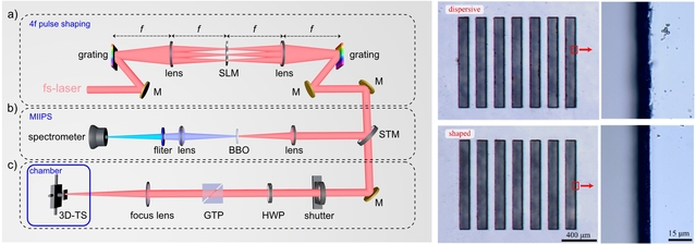 太赫兹片上乳糖探测【定性测量,课题组工作】 铌酸锂晶体在包括太赫兹波段在内的全波段光子集成方面表现出优异的性能,在非线性光学、集成量子光子学中和拓扑光子学中显示出广泛的应用。然而,高效高精度的毫米/厘米级的铌酸锂微加工仍然是太赫兹片上集成应用的瓶颈。为此,我们提出了一种新颖的实现芯片级铌酸锂的高效无裂纹制造的单步法,这对太赫兹片上技术的发展意义重大。我们研究发现在飞秒激光加工铌酸锂晶体过程中,时间色散对裂纹形成的影响比脉冲能流更重要。通过灵活控制脉冲色散,我们消除了由于非线性效应降低和常规热效应增强而产生的裂纹。结果表明,由时间色散导致的脉宽和波形的变化会通过调节光与物质的相互作用来加速裂纹的生长。与原始色散脉冲相比,无色散脉冲可以显著提高LN微加工的边缘质量并减少太赫兹波的缺陷吸收,使其透过率提高约5.8倍(论文:Materials Today Physics 35, 101102 (2023))