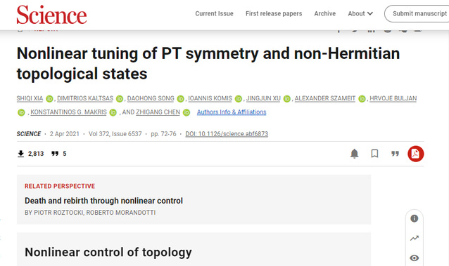 Nankai University was the first affiliation for the research work. Shiqi Xia, Ph.D. student of Nankai University, Kaltsas, Ph.D. student of University of Crete, Greece, and Daohong Song, Professor of Nankai University, were the co-first authors. Meanwhile, Zhigang Chen, Chair Professor of Nankai University, H. Buljan, specially appointed Distinguished Professor of Nankai University and Professor of University of Zagreb, Croatia, and K. Makris, Professor of University of Crete, Greece, are co-corresponding authors, while A. Szameit of the University of Rostock in Germany and other scholars also collaborated in the research. The research was supported by grants from the Key R&D Program of the Ministry of Science and Technology and the National Natural Science Foundation of China.